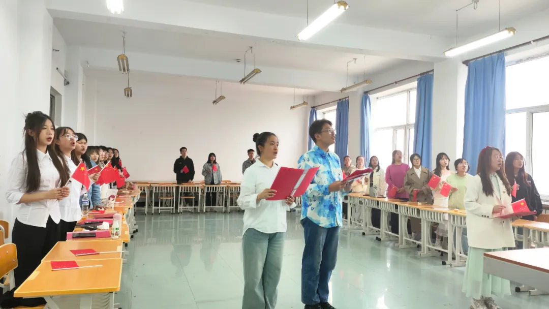 最后,全体同学起立共同朗诵李大钊先生的《青春》,向先辈致以最崇高的敬意。铿锵有力的文字句句入耳、声声入心,不仅凝聚着澎湃的爱国之情,也传递出当代的青春力量。