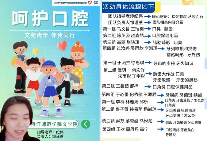 笑对生活,微笑如花,口腔健康,快乐永驻。一个人的健康始于口腔。为了提高人们对口腔健康的认识,牡丹江师范学院组织并成立了一支队伍“芸升非遗梦 白齿健牙行”,这是由一群热爱中华传统文化、致力于传承中华优秀传统文化的年轻人而组成的。这支团队结合非物质文化遗产宣传,策划了一场别开生面的口腔健康宣传活动。