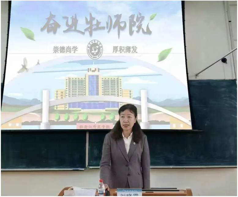 刘晓霞书记向同学们全面介绍了牡丹江师范学院的发展历程、办学理念、学科特色、校园文化以及未来发展蓝图。《奋进牡师院》使同学们深刻认识了学校数十载栉风沐雨、自强不息的办学历程和辉煌成就,增强了同学们对学校的认同感和自豪感,明确了自己作为“牡师院人”的新身份和即将肩负的责任,带着满满的信心开启大学生活新篇章。