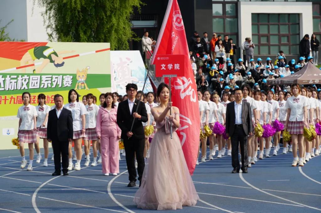朝霞映空,晨风轻拂。文学院(国际教育学院)代表队迎着破晓曙光入场,他们步伐矫健、精神抖擞;他们气宇轩昂、激情澎湃。